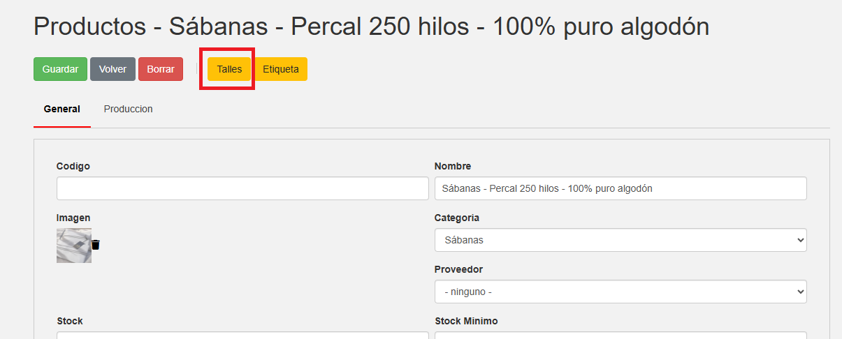 Ahora cada producto tiene habilitada la pantalla de Talles.